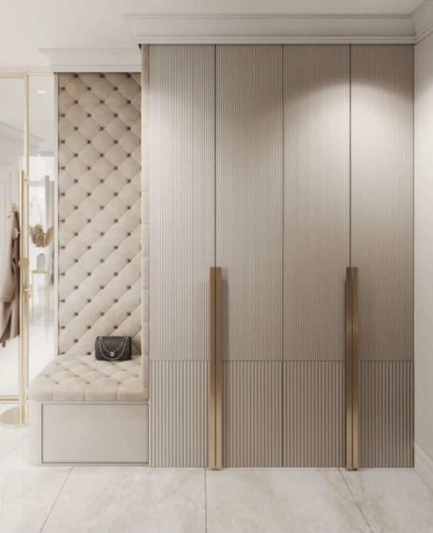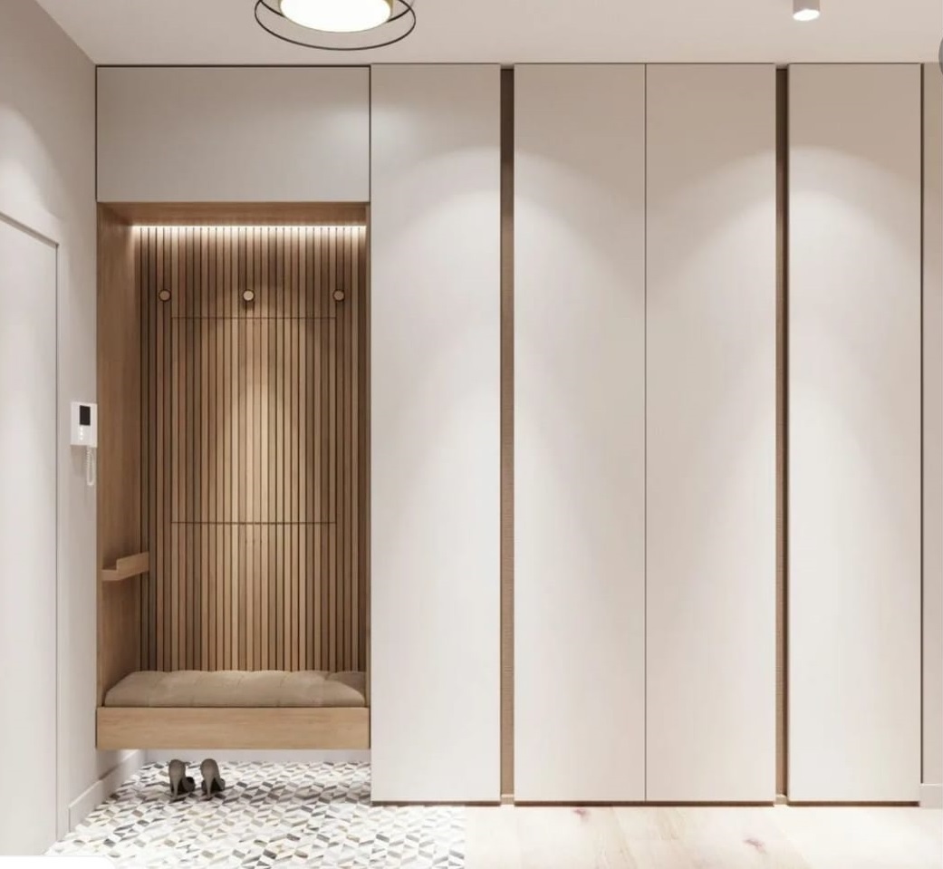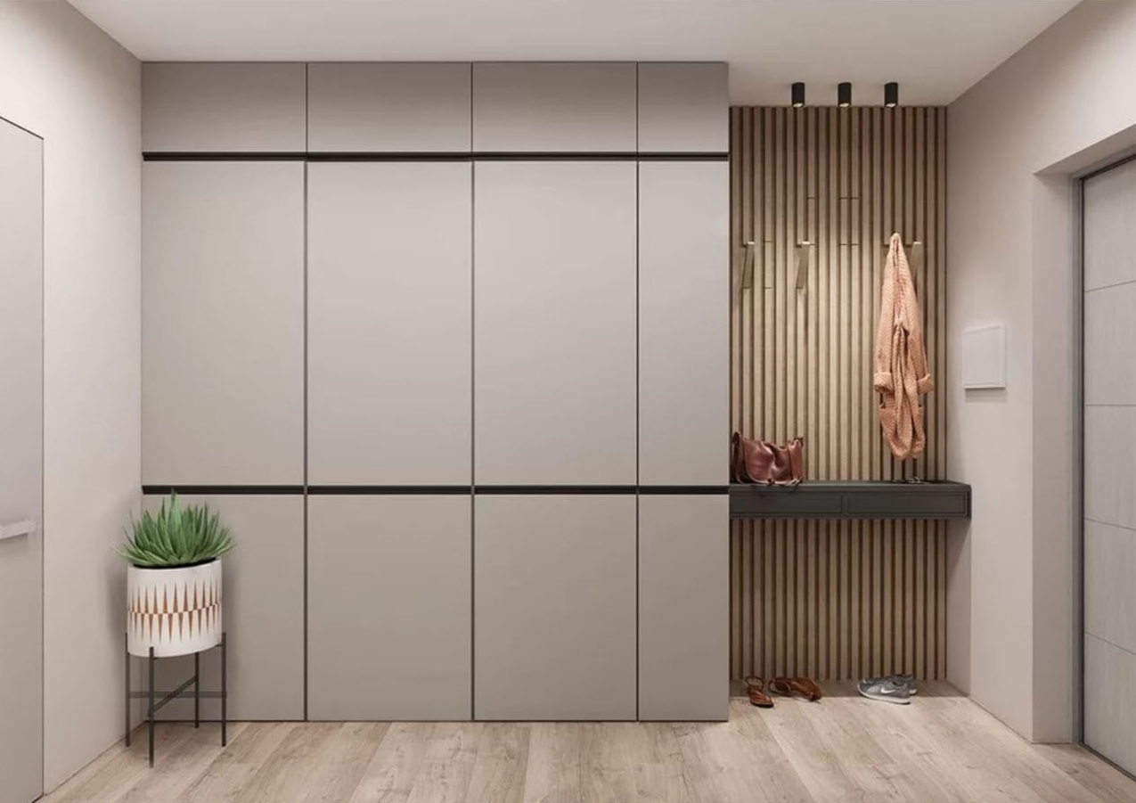 Шкаф в прихожию с элементами из аллюминиевого профиля, МДФ, Фрезерованного фасада. Модель S-001